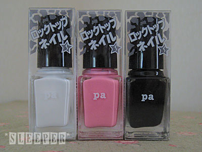 ベースはessie 697 MIDNIGHT CAMI2度塗りで左がロックトップホワイト、右がロックトップピンク。