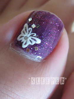 ・蝶のシールを貼り、スクエアホロ(シルバー)を散らす