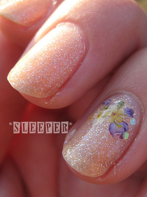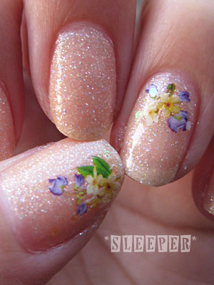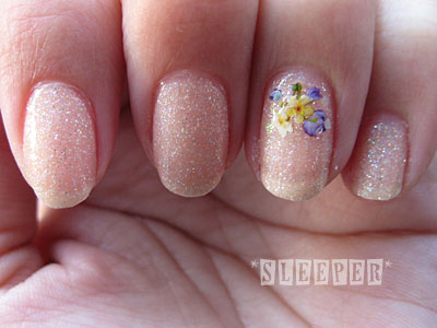 ・薬指と親指にシールを貼り、六角ホロを散らす。