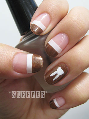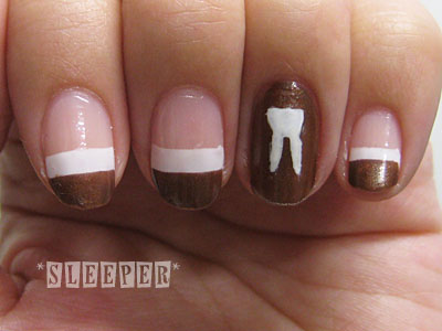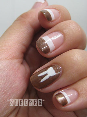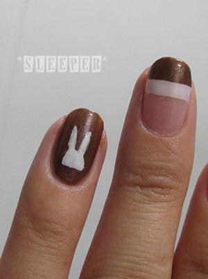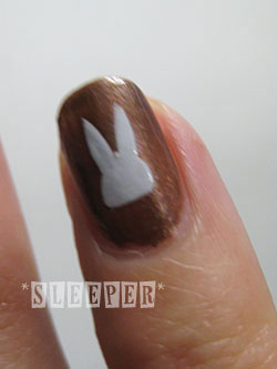 ・China Glaze 70276 WHITE OUT 兎のマークを描く(左手はfugicカラー/ホワイト使用)
