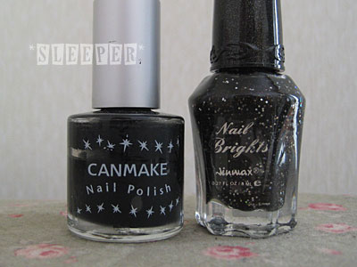 試し塗りしてみたら2度塗りでうっすら透ける感じだったので下地にキャンメイクの真っ黒ポリを塗りました。