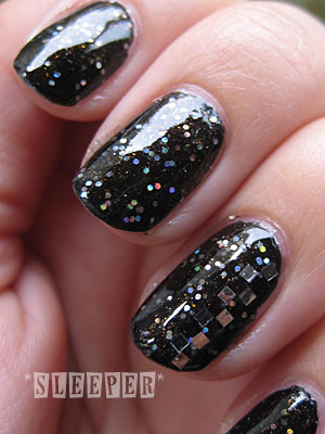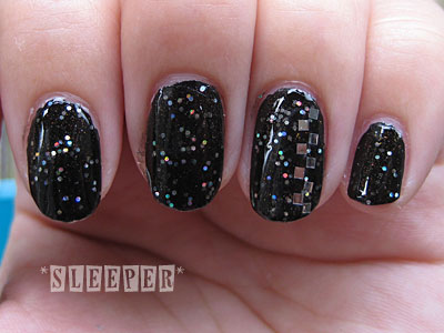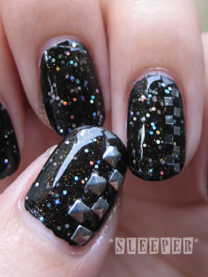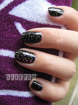 微妙に透ける黒ベースに、オーロラホロと赤いパール(シマー?)が入ってます。