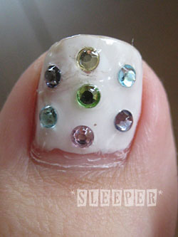 ・親指はガラスストーン(ss6各色)でドットに、それ以外は根元にss8を一つ置く。