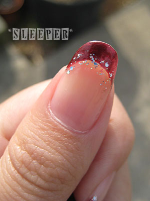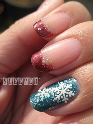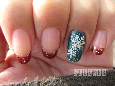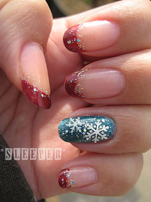 白グラデに赤と緑のスワロを散らそうかとも考えたけど