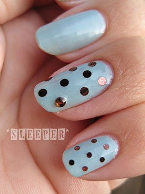 ・薬指、小指に丸ホロ(ショコラ1,1.5mm)で水玉模様