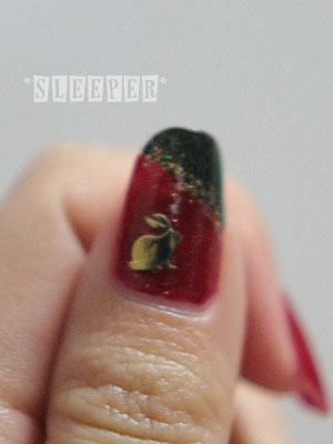 ・親指には兎のシールを。