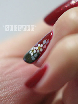 ・薬指に丸ホロ(ピュアホワイト、ゴールド1mm)で梅の花を作り
