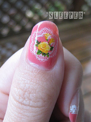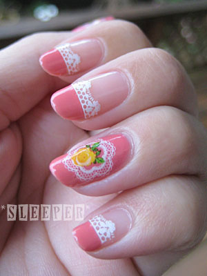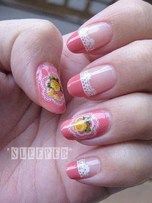 フレンチの境目に貼ったレースシールは以前も使った劣化でパリパリに割れるシールです(笑