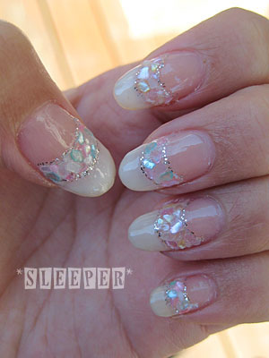 色んなところで見ていつかやってみたいと思ってた、Wフレンチの下の段にシールやホロが
