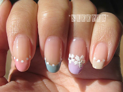 ・他の指はフレンチ境目に丸ホロ(ピュアホワイト1mm)を間隔を空けて並べる。