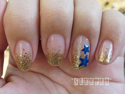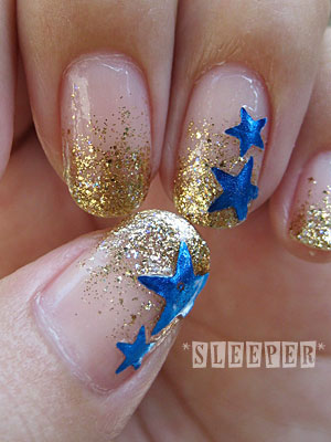 てことでブルー×ゴールドのネイルです。