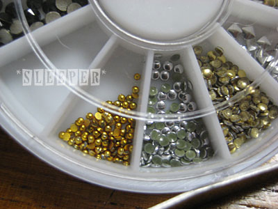 半球ゴールド(左端)とスタッズ(真ん中・右)、どっちも1.5㎜のはずなんだけど