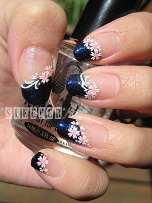 乾ききってないうちにトップコート塗ったら紺色がクリアの部分に色移りしちゃった・・・