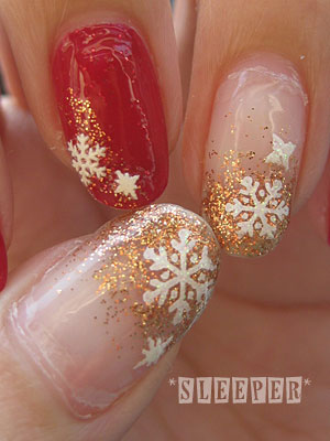 ・親指、中指、薬指に雪の結晶シールを貼る。