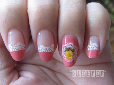 フレンチの境目に貼ったレースシールは以前も使った劣化でパリパリに割れるシールです(笑